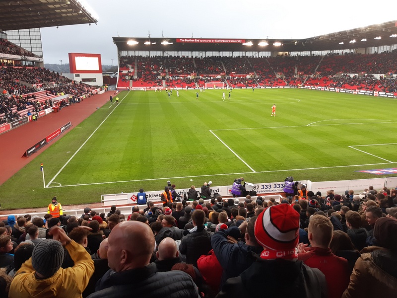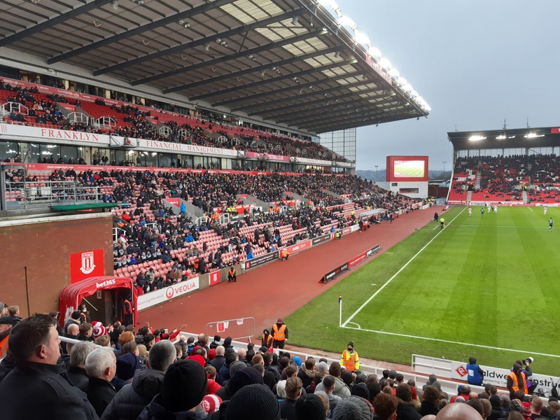 The Britannia Stadium appeared to be not much more than half-full to me so I was surprised to read that there were more than twenty-one thousand there. Perhaps a few season ticket holders had gone Christmas shopping. Three sides of the ground were in a horseshoe but the main stand not only stood alone but stood well back from the pitch. When combined with a very gradual incline it meant that fans in that part of the ground were a long way from the action. With all the money that the Bet365 owners have they might want to consider building a new stand next to the touchline.