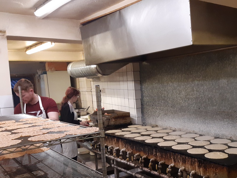 They also suggested that we tried oatcakes from a shop over the road. I’ve a feeling that oatcakes are the Stoke equivalent of a parmo and that everyone visiting town will be asked if they’ve had one. As breakfast choices were limited and the oatcake shop opened at seven on a Sunday morning we had one before we left the next day. It was ok, just a pancake style wrap really, but when filled with egg, bacon and sausage it hit the spot.