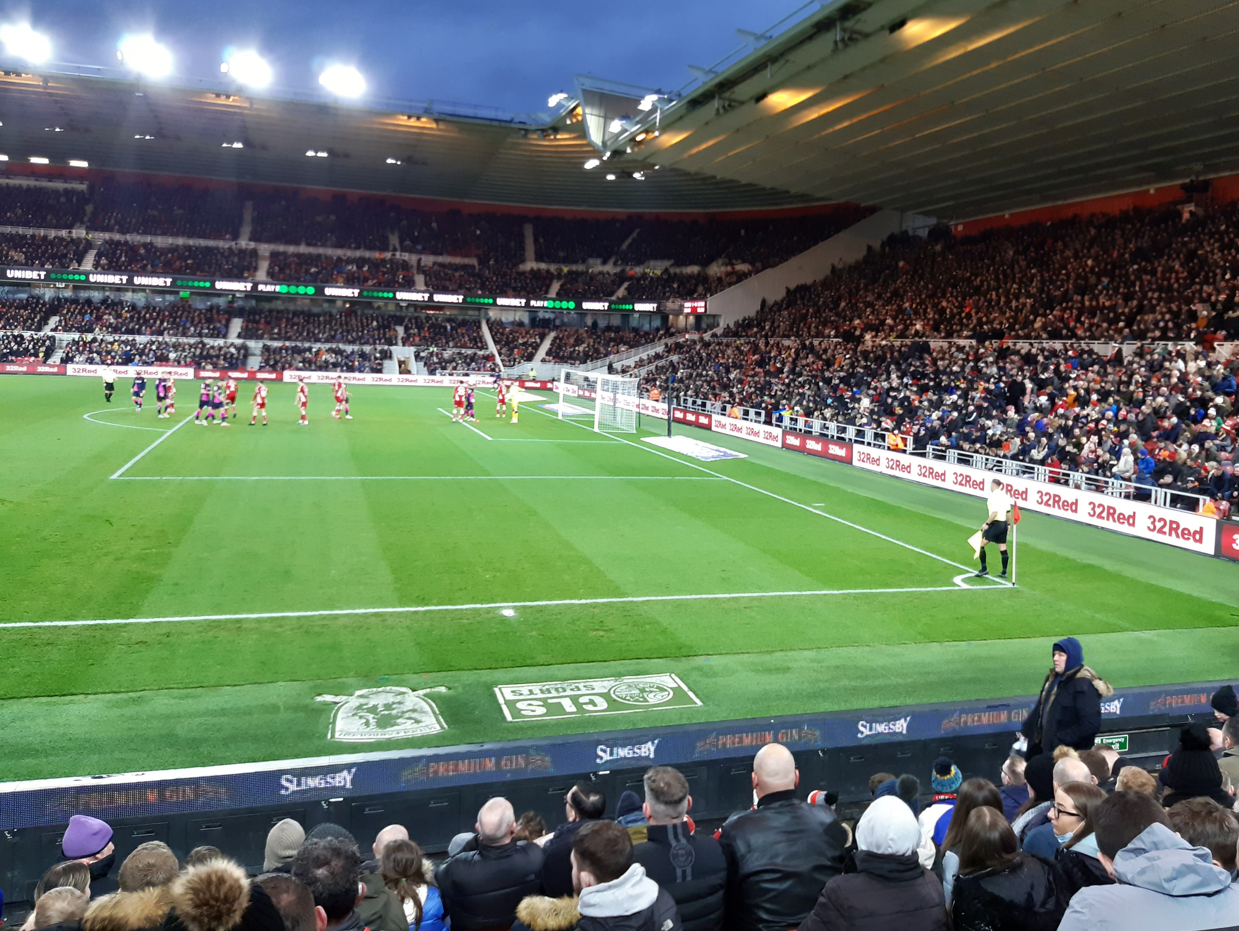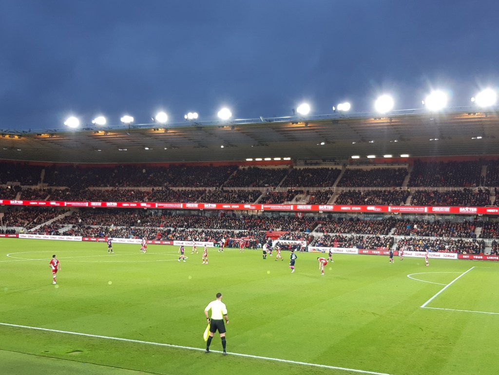A quick drink each and we were up to our seats, ten rows back and looking out at the penalty spot at the North Stand end. We got a decent view of a fantastic first-half Boro performance in which we could have gone in five-up after dominating play and possession. There was just the one goal to show for it, a comedy own goal from a Forest defender who hit a blind back pass beyond his own keeper.