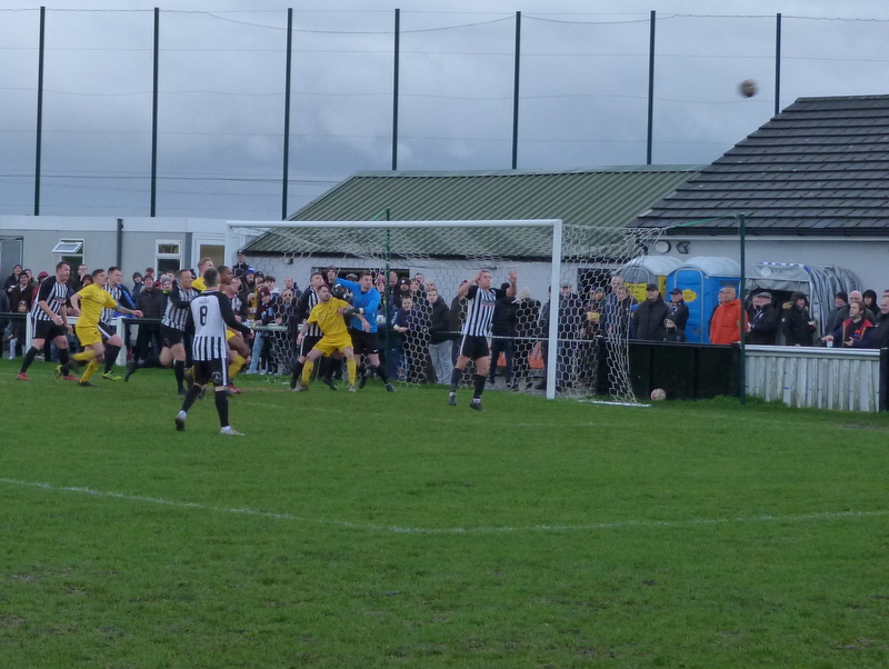 We had got in early to find space in the 200-seater covered stand. It proved to be a wise decision as there were times when the rain was coming down heavily. Penistone were dressed up as Newcastle, with Emley in yellow. There were some tall lads in the Emley side, although one of the home centre halves could reasonably be described as a big unit. The season was panning out better for the home side and increasingly better form had seen them rise to eighth in the table. Local rivals Emley were down in seventeenth.