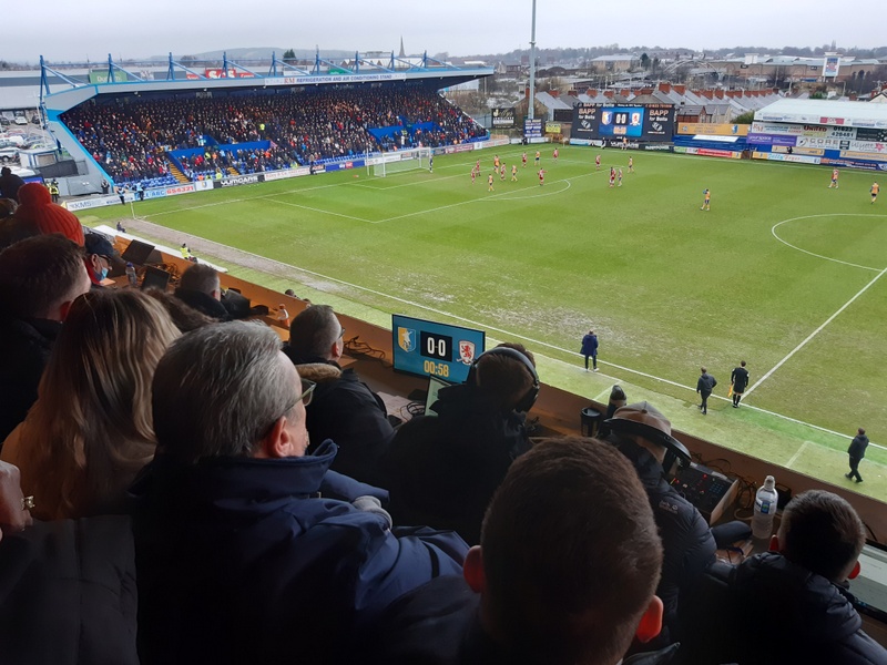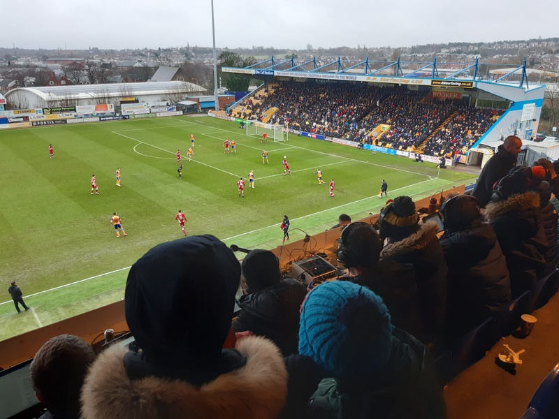 The Boro support had the stand to our left. They kept up a decent volume throughout the game and the “Mansfield’s a shithole” ditty raised a few laughs from the home fans around us. “It is, mind” said one, “but it’s our shithole”. I know the feeling.