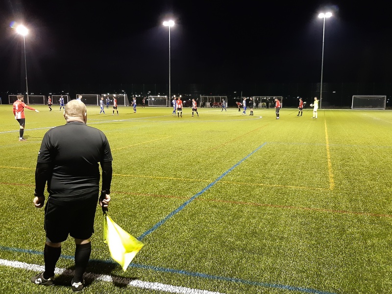 As so often happens at this level the linos were drawn from the ranks of the subs or coaching staff. Neither of the press-ganged fellas on this occasion were keen to be involved and one kept the flag in his coat pocket whilst the other left the flag on the floor and picked it up only when absolutely necessary.