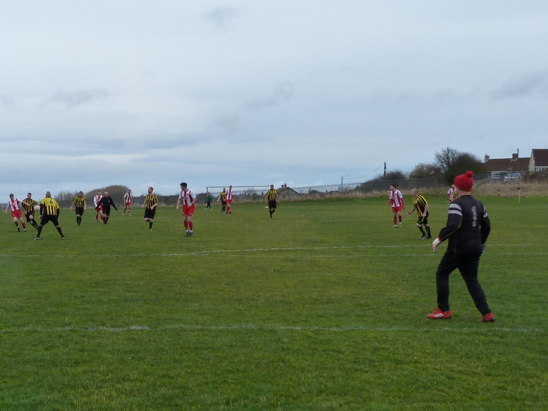 As so often happens at this level the linos were drawn from the ranks of the subs or coaching staff. Neither of the press-ganged fellas on this occasion were keen to be involved and one kept the flag in his coat pocket whilst the other left the flag on the floor and picked it up only when absolutely necessary.