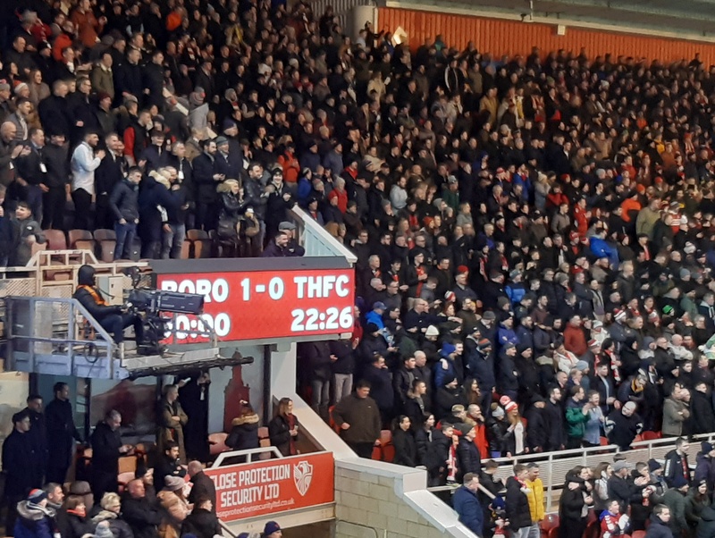 I’d switched seats for this one and so Harry and I were in the front row of the West Stand Upper. It’s the same row that Gibbo sits in, albeit around fifty yards to our right. The atmosphere was one of the best I can recall at The Riverside, maybe the best. The Liverpool game in ’98 usually gets a mention in conversations like this but that was in the pre-Red Faction days of just one singing end. When songs are started and taken up at both ends of the ground it makes it much more likely that those down the sides will join in too. And we did.