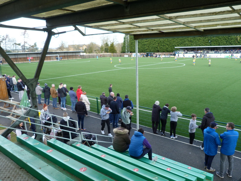 I liked the Craik Park ground. There was a raised seated stand on the far side with tall conifers behind it. On the side of the pitch where I came in there was another covered seated stand and a raised viewing area that was a sort of balcony to a bar tent. A covered standing area behind one of the goals provided an alternative to seating down or leaning against the perimeter railing.