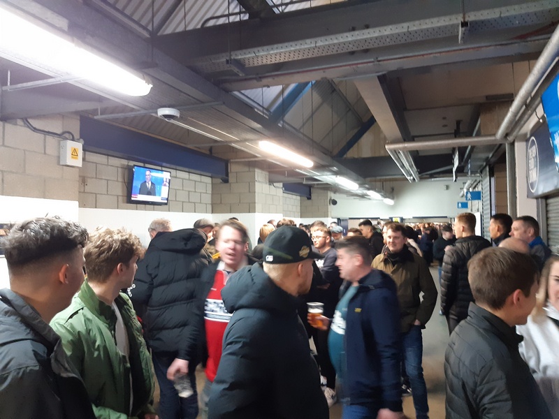 A benefit of having a whole stand with only the upper tier full was that the concourse area was big enough not to be crowded. I was able to watch the end of the televised lunchtime game without being jostled or having beer thrown over me. Stuff you think that you’d be able to take for granted.