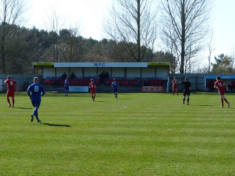 It was a standard late season encounter with nothing at stake as Wolviston, in blue, were twelfth in the table and Shildon, in red, just the one place above. Neither is going to be involved in the promotion or relegation battles other than as a third party. The home side had the better chances early on, but the visitors came more into the game as the first half went on. It was goalless at the break.
