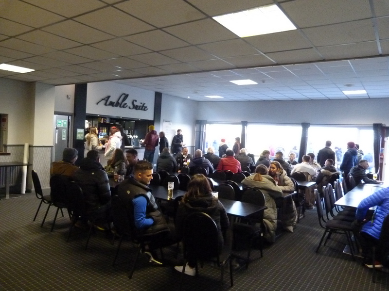 There was a full clubhouse with a bar and with a buffet laid out on some tables at one end. I presumed that it was intended for committee members or safety officers as it certainly wouldn’t have been enough to have fed a crowd of over three hundred. I settled for a cheeseburger from the tea hut and then took a seat in one of the two covered stands that ran along one side of the well-maintained pitch.