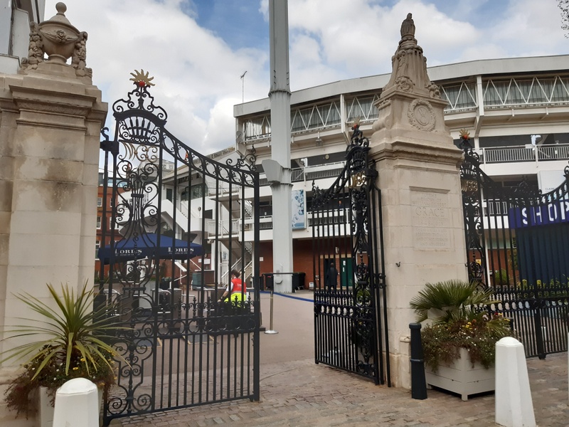 Little Venice is actually a bit too far along the canal, so I had to retrace my journey to reach the Grace Gates. I got there at about 12.30, which was two hours after the scheduled start. That’s not really a problem when play is likely to go on until six or so, unless a team gets skittled in the opening hour.