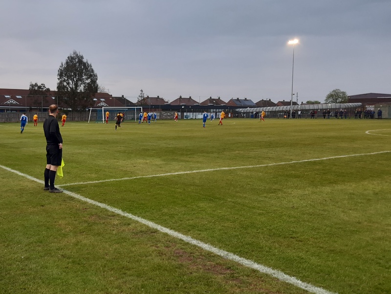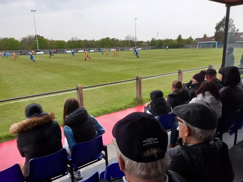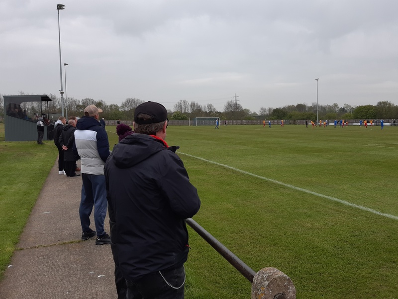 I took a seat in a fifty-capacity covered stand, next to a brown spaniel. There was a covered elevated standing area on the other side of the dugouts and despite intermittent drizzle a few people watching from pitch-side whilst leaning on the perimeter fence.