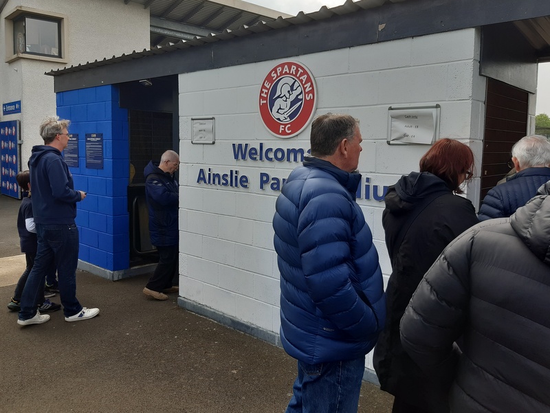 It was eight quid admission and another two for a programme. Ainslie Park is a relatively new ground dating from 2008 and with an artificial pitch. It has a covered stand that seats around five hundred and can accommodate another couple of thousand along the perimeter railing and up on raised embankments.