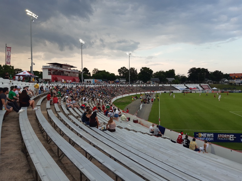 Whilst there were no sporting events to watch in Leadville, Jen and I had been able to get to a football game whilst staying at David and Jackie’s house. It was a few miles away at the Randy Penn Stadium at Englewood High School and in the fourth tier USL2.