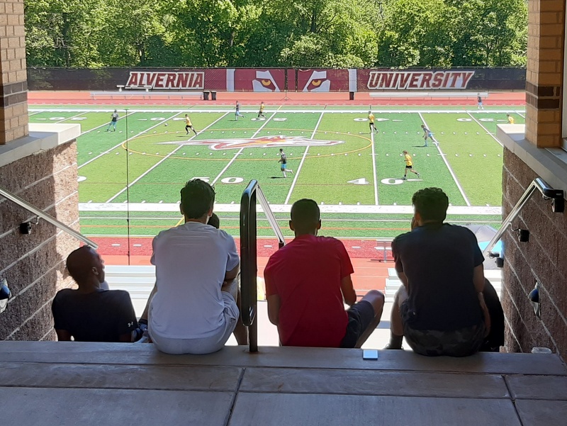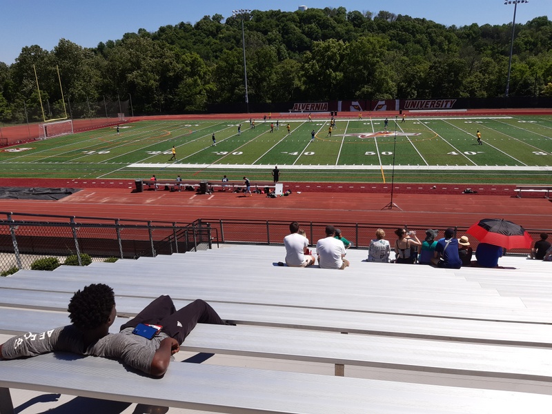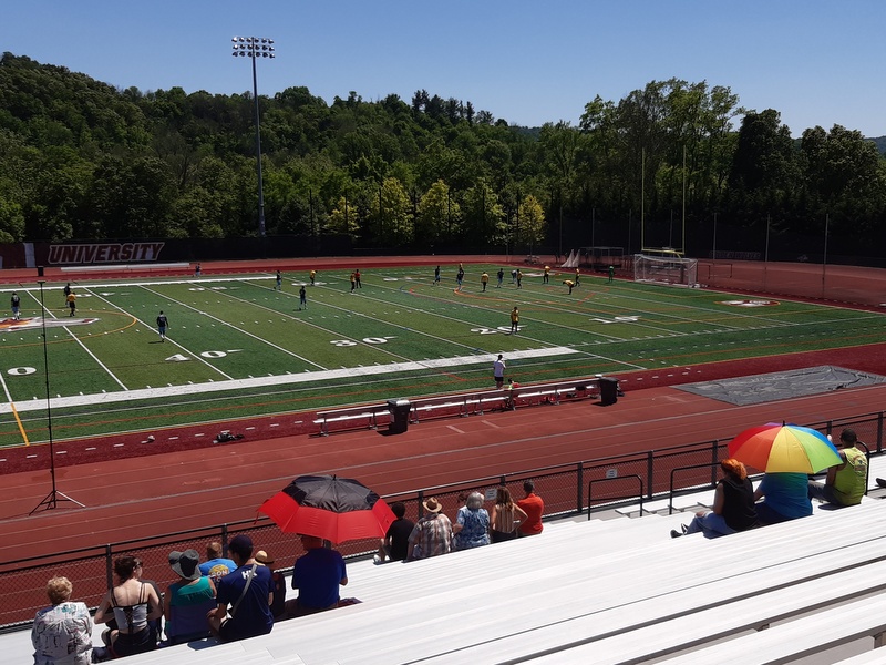 The Randy Penn stadium looked as if it was more usually used for American Football, with the markings on the pitch and the posts still up at each end. There was also an athletics track around the pitch.