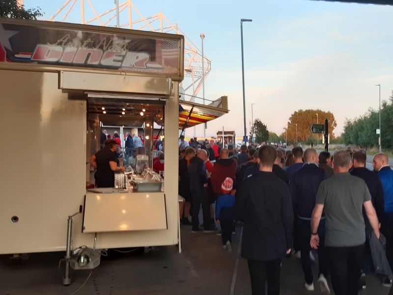 I wasn’t sure if I’d get to this game as we had a fairly tight train connection in London on the way back from our Belgium trip. It went ok though and I was back in the house by six o’clock. I picked up Harry and we were at the Riverside in plenty of time.