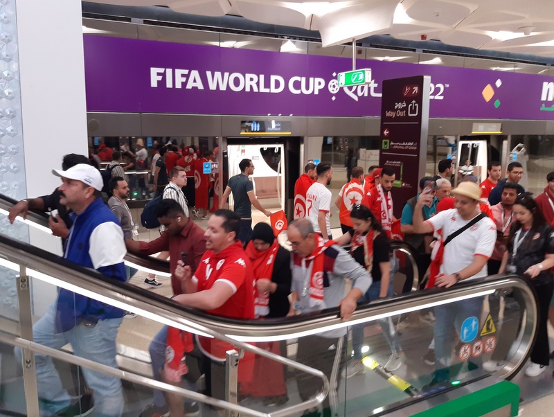 The game ended goalless and we headed for the metro. We were directed away to a tram that took us one stop away from the ground. Unfortunately, it was one stop along the line where the carriages were already full of fans and it was a tight squeeze to get on. There were some Saudi supporters at the stations, clearly delighted with their win over Argentina and we were treated to the chants of ‘Messi, Ciao’ that we’d heard at the previous World Cup. Things change, things stay the same.
