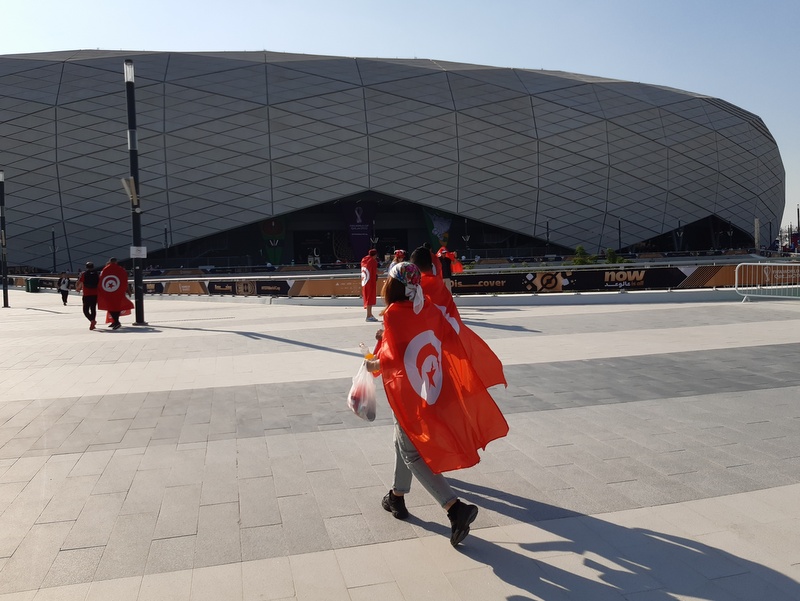 It was easy enough to get the Education City Stadium for our first match. The journey began with a forty-minute bus ride from outside of the boat terminal. There were always sufficient buses and we didn’t have to queue. The shuttle wound around the various ships before dropping us at the Al Ghanian bus station.