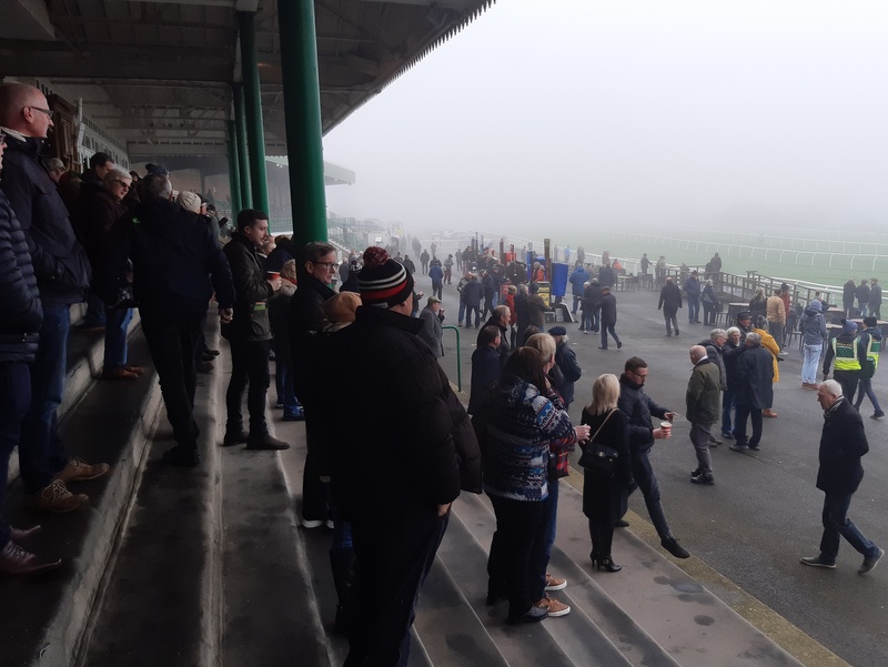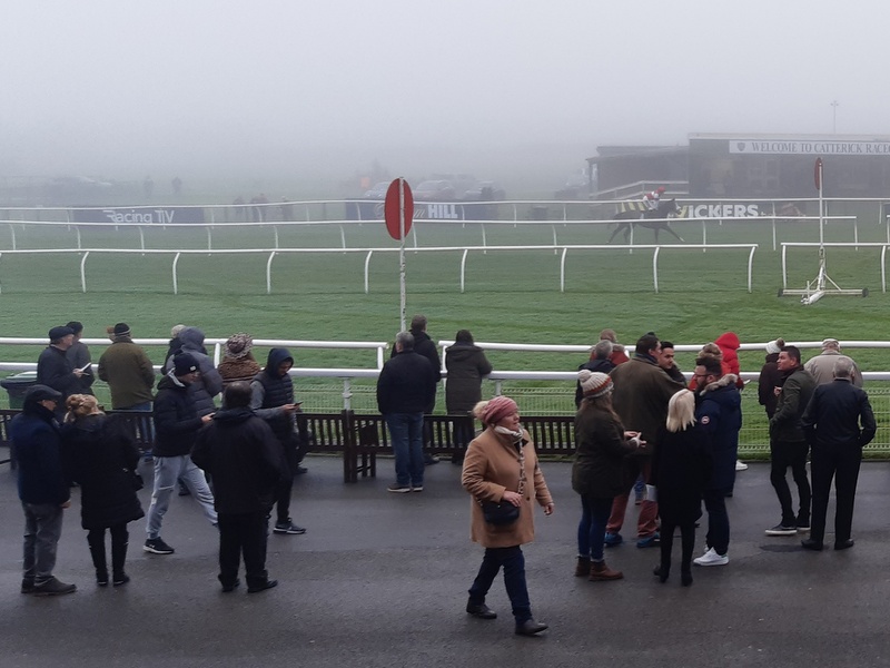 Catterick is a small, quiet track and just the sort of place I like, particularly on a winter weekday. There was a lot of fog in the air, so much so that there was some doubt over whether the meeting would go ahead. The commentator struggled once the horses were more than about fifty yards from his position and so had to just make assumptions as to where he thought they might be.