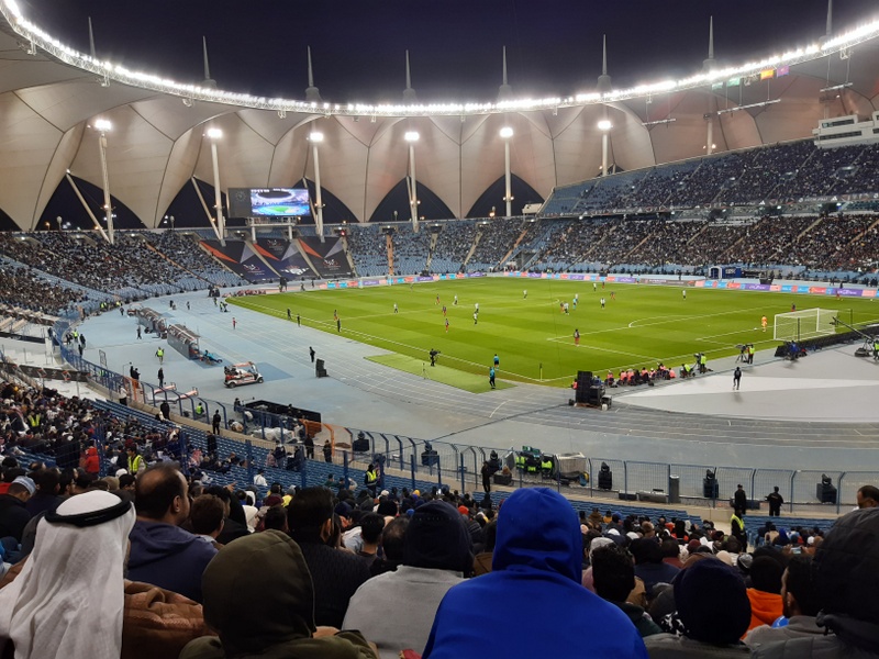 All of the Super Cup games were taking place at the King Fahd International Stadium in the north-east part of Riyadh. I flagged down a fake taxi driver who wouldn’t quote me a fare. He just said not to worry and then, as almost all the taxi drivers do here, chatted about cricket. They all seem to have a favourite English player and this fella raved about Moeen Ali. It took around half an hour to get to the ground and, once there, he still wouldn’t give me a price. I gave him a hundred riyals which he seemed happy enough with. Maybe I overpaid, but if not, he’ll have learned a valuable lesson to mention the price in advance next time.