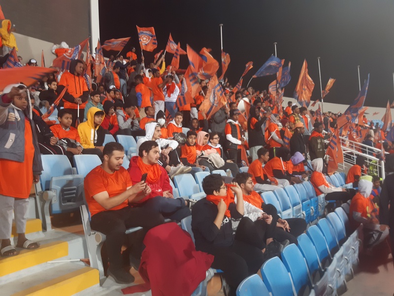My new section was below what looked like a commentary box and the overhang came in very useful when light drizzle started to fall. The Al-Fayha fans to my left kept up their high tempo support despite the change in weather and were rewarded twenty minutes in when their team scored on the break.