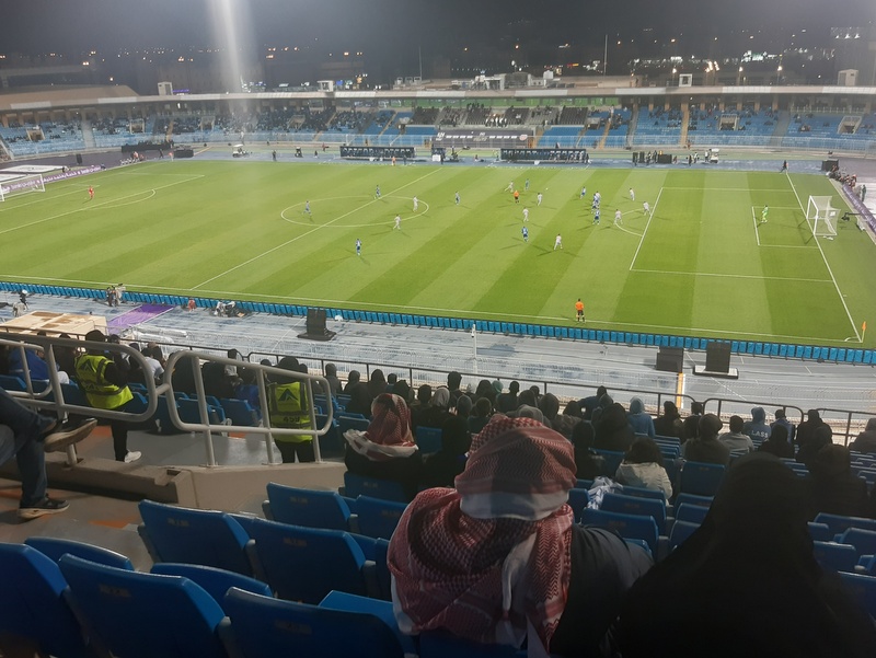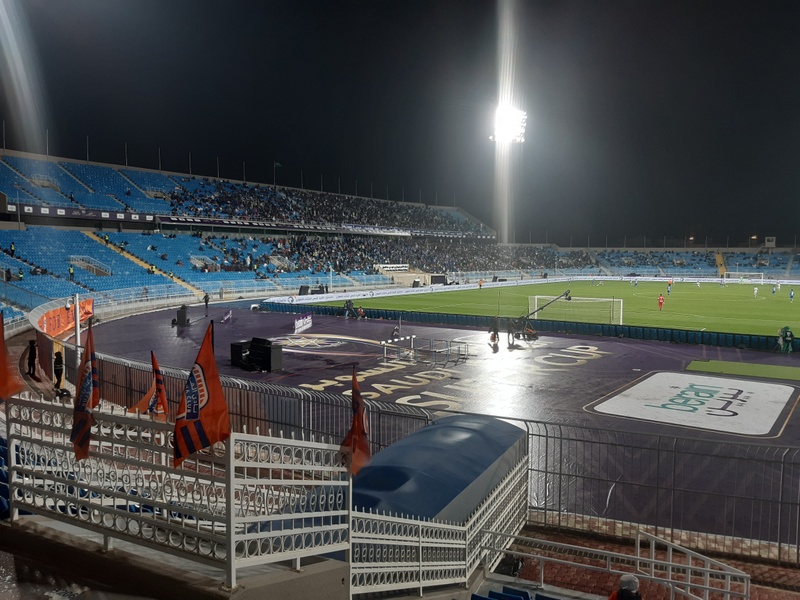The rain had stopped by half-time and with the top-tier of the open stand to my left beckoning I switched sections. A few of the Al-Fayha fans had the same idea, but anyone wearing orange colours was turned away. I’m of the age where I’m rarely suspected of doing anything that I shouldn’t and I’ve learned that a confident manner is generally sufficient to avoid any scrutiny.