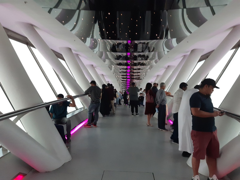 At the bottom is a hotel and three floors of shops and food outlets. A couple of lifts took me close to a hundred floors up into the air where I paid fifteen quid to access the walkway. The fella selling the ticket warned me that a sandstorm meant that the views were crap, but what do you do? I was there and unlikely to go back so a crap view was better than no view.