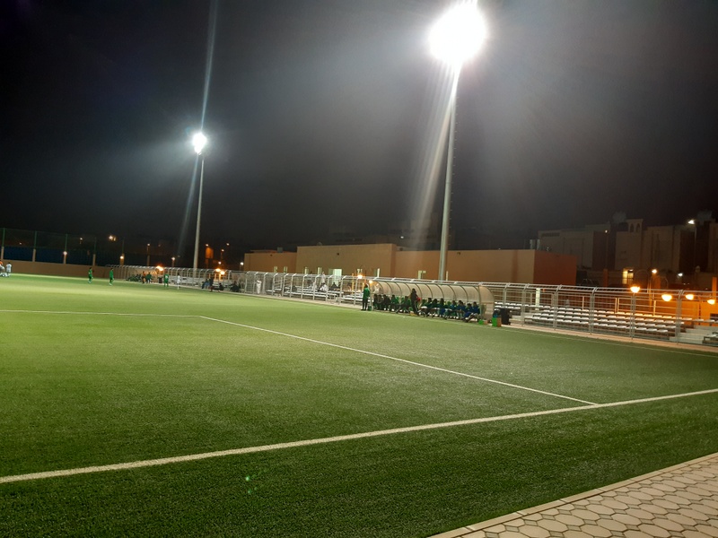 After taking advantage of the food court, I caught a cab to the Irqah stadium for a second division (third tier) match between Al-Shoaib and Al-Ansar. It was a small ground with an artificial pitch and four rows of seating along one side. Sadly, there was a fence between the seats and the pitch and with fences also cordoning off the entrance from the dressing rooms it meant that when the action was taking place in some areas at the other end of the pitch I had to watch through three separate fences.