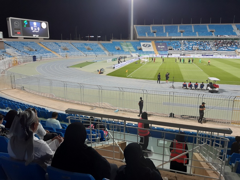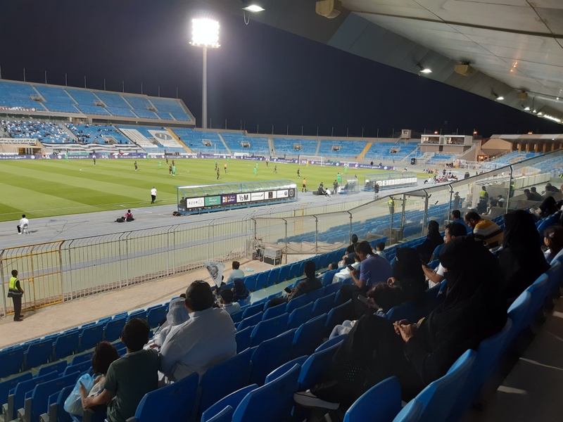 I’d already sorted my seat and for a very reasonably ten riyals, which equated to two pounds and eighteen pence. I was in Block 201 which was formerly the family area and is in the covered stand, right next to the VIP section. There was a Perspex screen to make sure that I didn’t stray into the posh bit. Despite the bargain ticket price there was a very small crowd, probably in the hundreds rather than thousands. I didn’t see any away fans but it’s a three-hour drive from Al-Hasa and with such a late kick-off I doubt many would have fancied that sort of round trip.