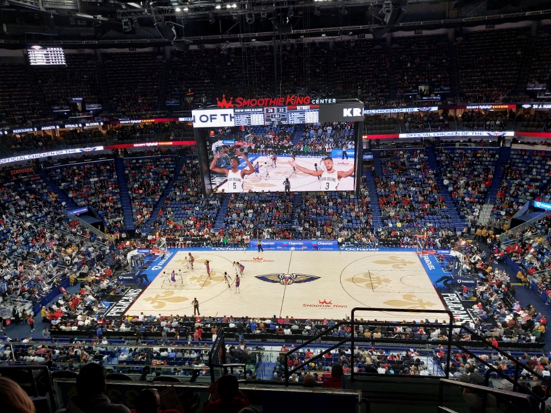 The Pelicans had only arrived back in town that day, having been stranded overnight after an away game. With sixteen games scheduled for November they chose to rest both of their star players which may have impacted on the crowd. On the plus side it meant we didn’t ever have to queue to get another ten dollar can of beer.