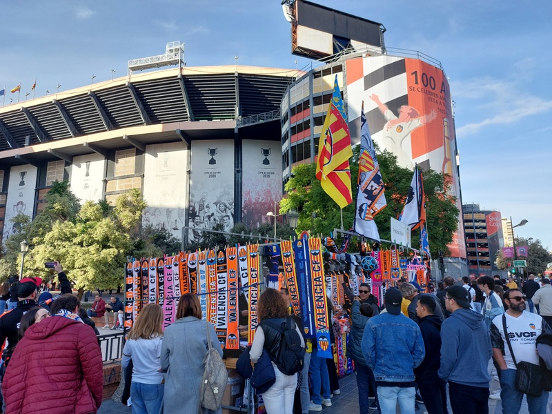 As game time approached, we made our way to the ground. It was busy outside with fans of both sides milling around. The scarf stalls were doing brisk business, as were the bars. If I lived in Valencia, I’d be happy to go along regularly and follow the team. We’ve got Mendieta in common and I watched them win the Copa del Rey back in 2008. That’s enough for a connection.