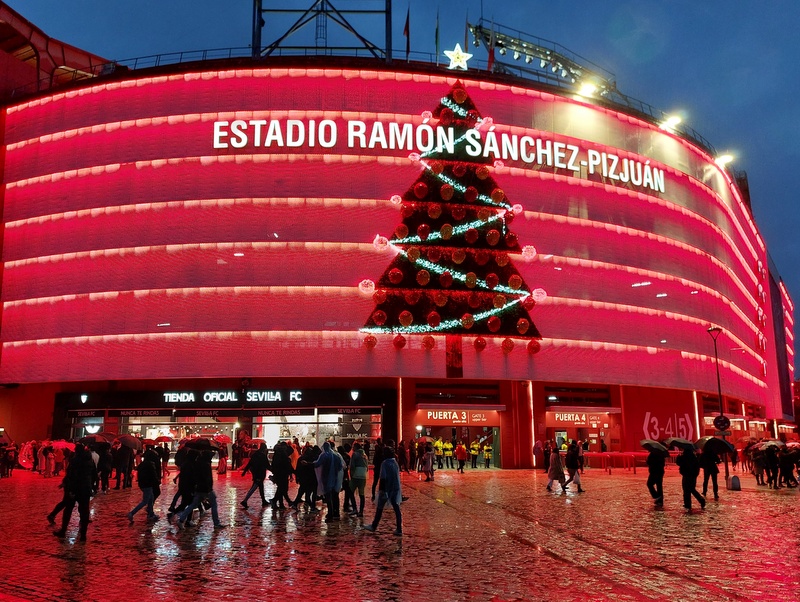 Seville still seemed to be celebrating Christmas and New Year, with the Three Kings festivities culminating on the sixth of January now added into the mix. My first game of the visit was a La Liga fixture at Sevilla’s Ramon Sanchez-Pizjuan stadium. It was about an hour’s walk and it took me past a couple of presumably well-known cathedrals. It was a route that had also been selected for a Three Kings parade and so I had to fight my way through the crowds who were waiting to scramble for the sweets thrown by the parades.