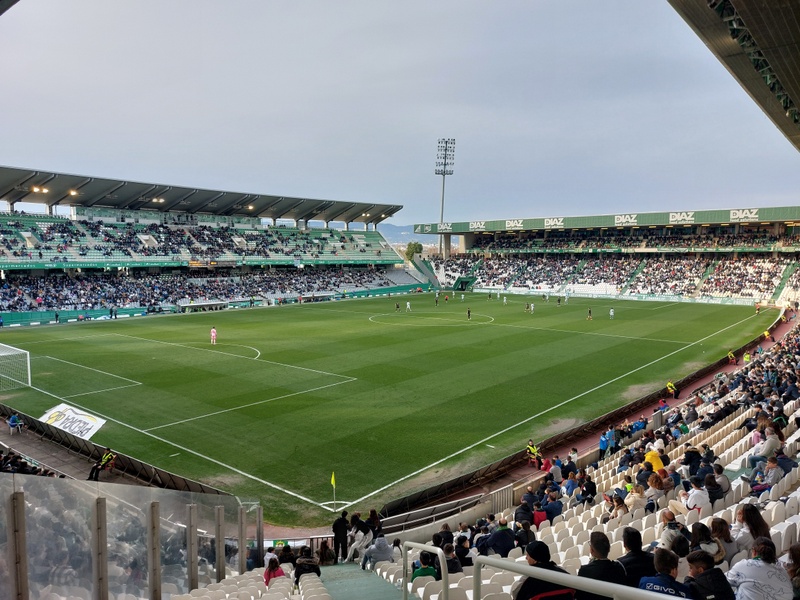 This was a promotion clash, with Cordoba in the play-off spots and Intercity just below. The home side took the lead mid-way through the first half when a ball from the right was steered home. That was the cue for some scarf twirling from all four stands.