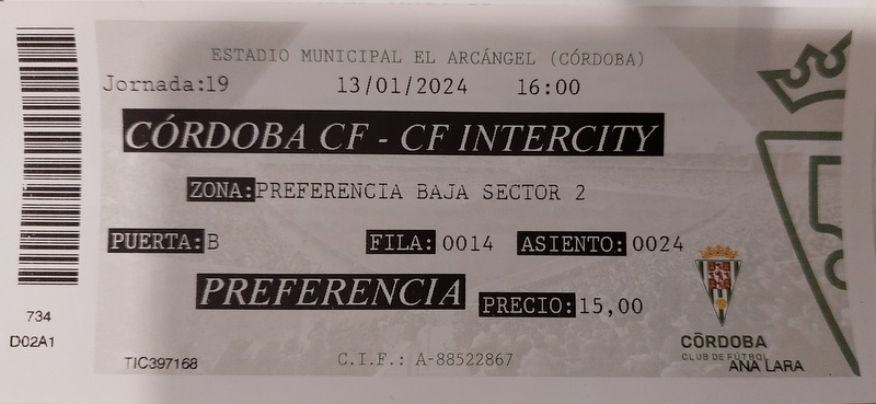 It was fifteen euros for a seat in the Preferencia stand, the biggest one in the twenty-five thousand capacity ground. It was less than half-full though, so clearly visitors Intercity weren’t much of an attraction.