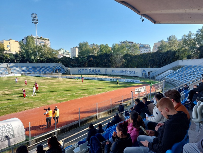 I had a choice of games in the last sixteen of the Cup, unfortunately both taking place at the same time. A barber that I went to suggested that I see his team, Partizan. They are the big club in town, but have a modern stadium and were an arse on to get to. Instead, I picked KF Tirana who were within walking distance of my hotel and play in a ground built in the mid-fifties.