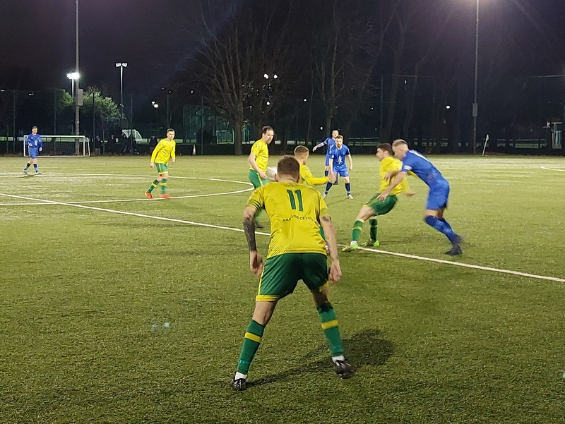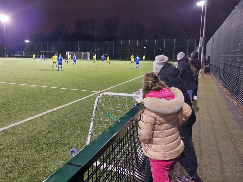 The match was at the Irishtown Stadium, but on the astro pitch outside rather than in the stadium proper. It was a third-tier game with around eighty people braving the cold and the lack of anywhere to sit down. There was plenty of shouting, both on and off the pitch, but with little of it directed at the ref. I like that.