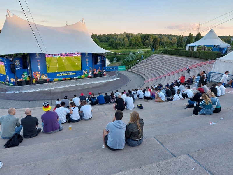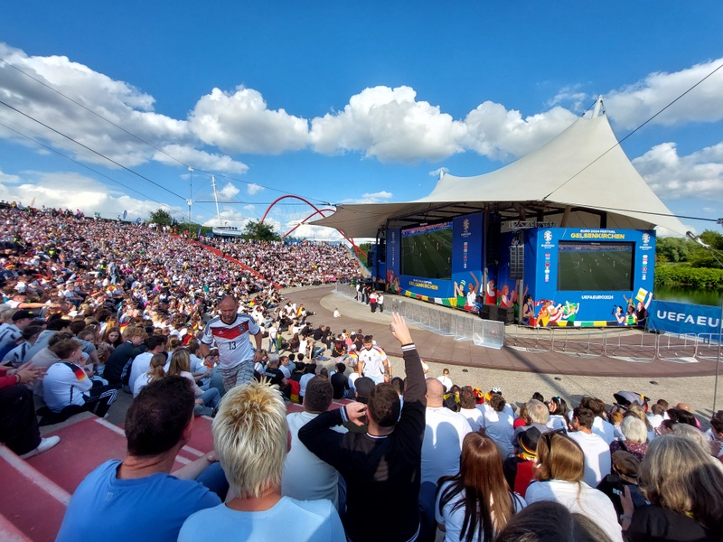 We’d dipped out early from the Croatia game to give ourselves plenty of time to reach the amphitheatre alongside the main Gelsenkirchen fan park. We got there easily enough via a shuttle from the station and then followed the signs for what seemed like a very indirect route to the amphitheatre. It’s supposedly a six-thousand-seater outdoor area and apparently Scorpions have played there. That last bit of info may not be too unusual in Germany.