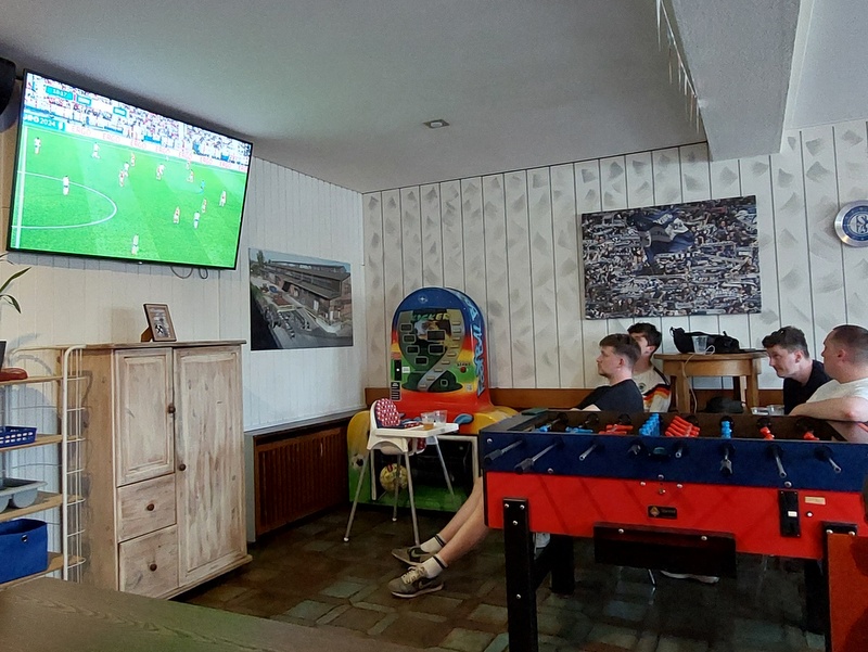 As the afternoon wore on, we took a taxi in the direction of the Veltins Arena, stopping off on the way at the social club for fans of Schalke 04. I’m not sure it was the venue that we’d intended but it had beer, food and televisions showing the Slovenia v Serbia game.