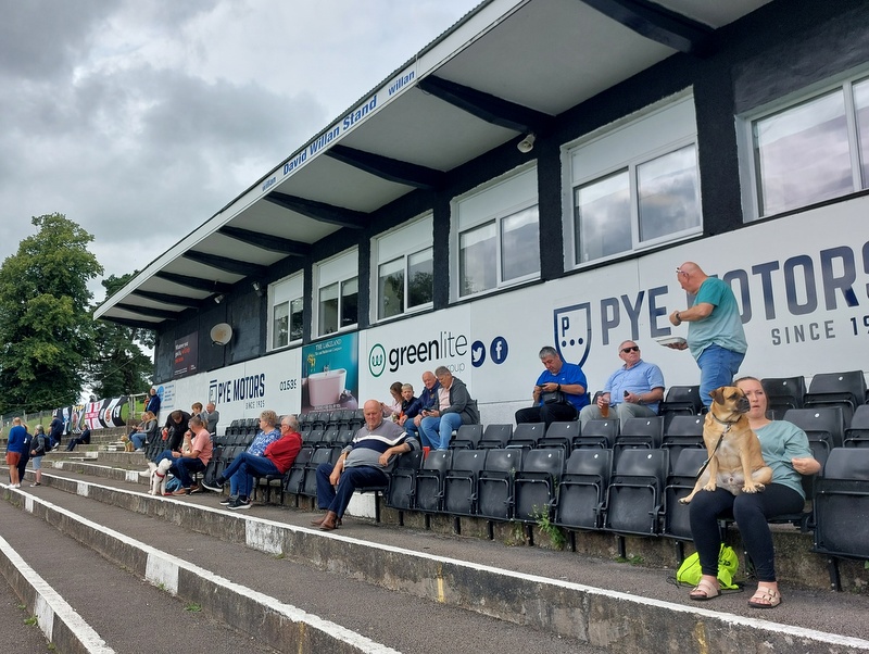 There were four stands dotted around the Parkside Road ground. In addition to the seats behind the goal where Henry and I had taken up residence, there were two stands along the side to our right and a small fourth covered area to our left. Whilst there were a few people in that stand, its main function was for storing lawnmowers.