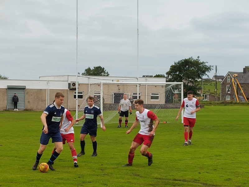 The weather was little better in Moresby than it had been in Muncaster and so Harry and I spent most of the game inside of the car. One fella watched from alongside the clubhouse wall but, other than the subs and coaches, everyone else remained within their vehicle lined up behind the goal. Harry remarked that it was like ‘being in an executive box’.