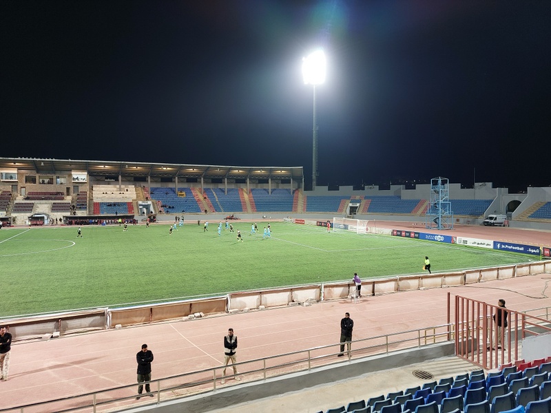 We had seats along the side of the pitch, facing the main stand. Prince Mohammed Stadium was built in 1998 and has a current capacity of 11,400. It’s an artificial surface with a running track between the pitch and the stands.