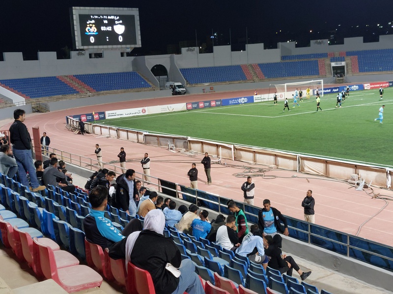 Good as all the tourist stuff was, I needed to tick off a football ground to make the visit complete. There weren’t many options, and the only match of the trip took place on our first night in Jordan. Getting there required a forty-minute drive north from our hotel in Amman to the Prince Mohammed stadium at Zarqa. The roads were poor, as they were in most of Jordan, and I seemed to hit a pothole every few hundred yards.