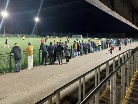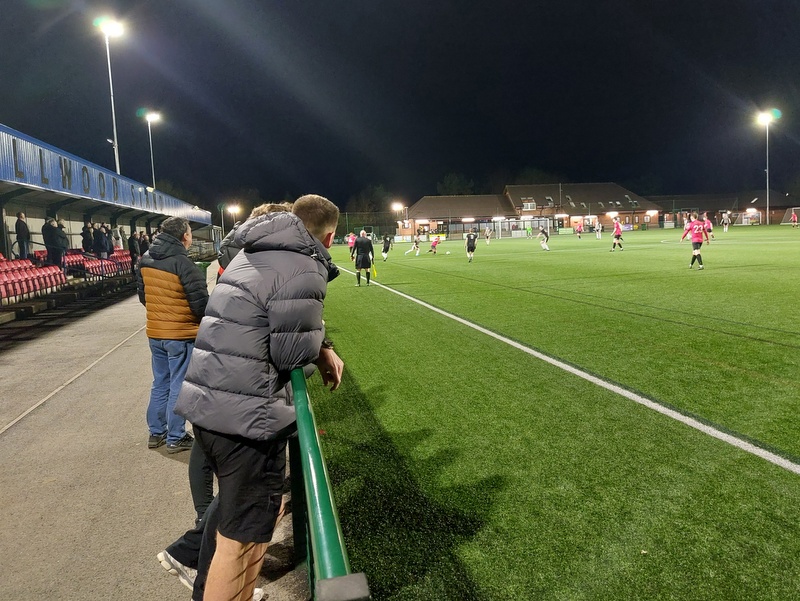There was a three-row covered stand that ran alongside the pitch, although as everyone simply stood in front of it, at the railing, there was no chance of seeing any action from the seats. At each end of the seated section were standing areas that provided a better view. The playing surface was artificial, and with a higher bounce than you tend to see these days. It almost caught out the Ryburn keeper early on, but he scrambled back to claw the ball off the line.