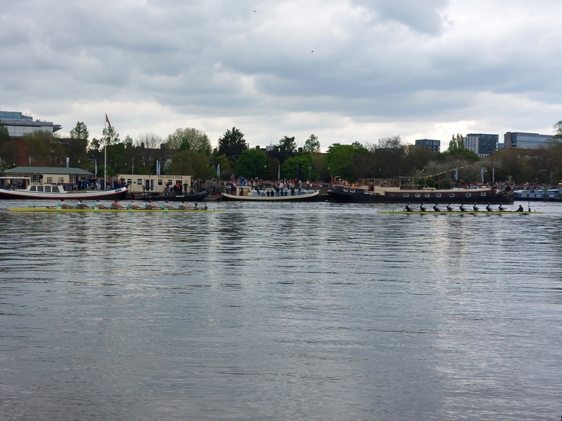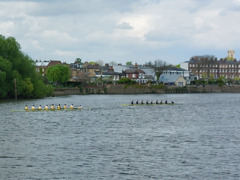 As we walked towards Putney, the boats went past at twenty-minute intervals. First was the women’s race then each of the reserve crews and finally the men’s boats. Each time Cambridge were well clear of their rivals, spoiling the day of their Chiswick Bridge supporter.