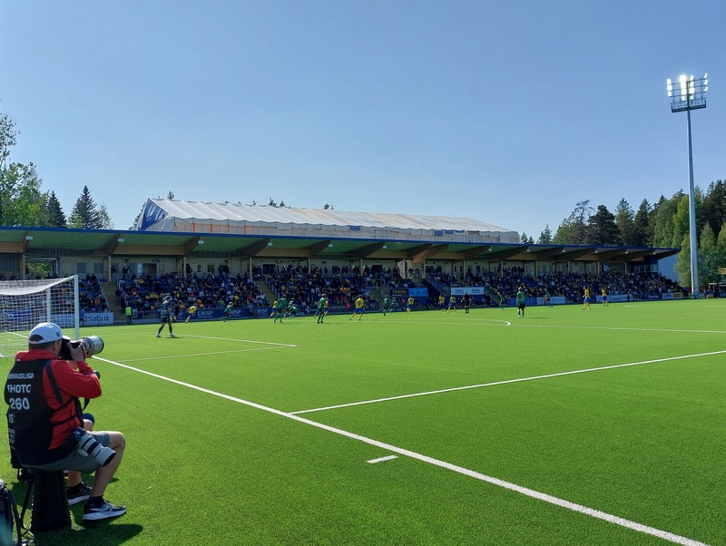 We caught a train from Helsinki station that took us four stops and twenty minutes north to the suburbs. Everyone was very helpful, something that I now associate with Finns, and we arrived at the Mustapekka Arena with around twenty minutes in hand. It’s a ground with just a 2,600 capacity, which struck me as being on the small side for a top-tier fixture.