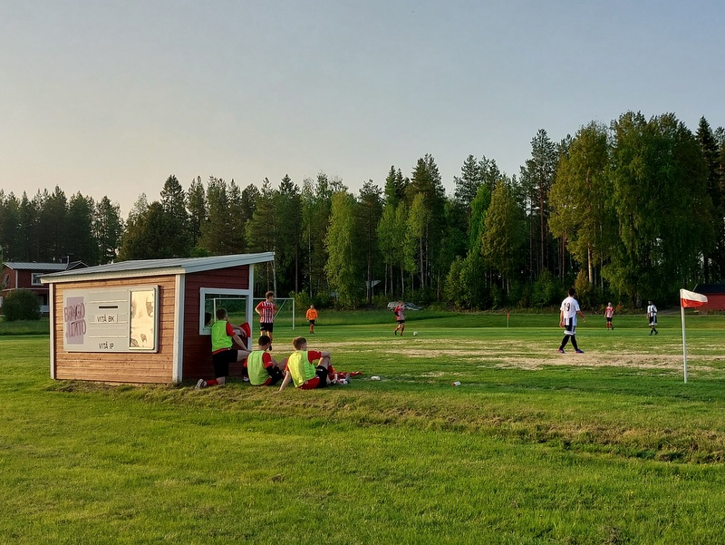 The players were still warming up as I took my burger to a small three row wooden stand. It had an announcer in a box at the back of it, which I thought a little over the top for a sixth-tier Division 4 Norrbotten Norra fixture.