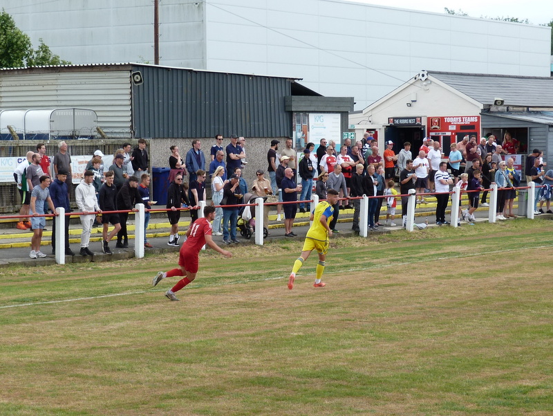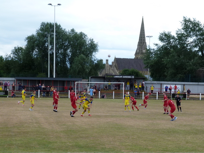 Selby were in red, with Scarborough in their recently released yellow and blue kit. It was so new that they hadn’t had time to add numbers to their shirts, which might well have caused difficulties if the ref wanted to book someone. There were also lots of the new Scarborough kits among the crowd. I’d estimate that maybe half of the 358 in attendance were supporting the visitors.