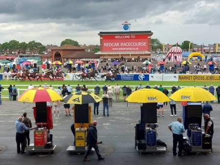 The heavy rain over the past few days made a return to the turf possible and he was entered in a nine-furlong handicap at Redcar. I thought I’d have a beer or two and so Jen and I took a taxi for the twenty-five-minute journey to the course.