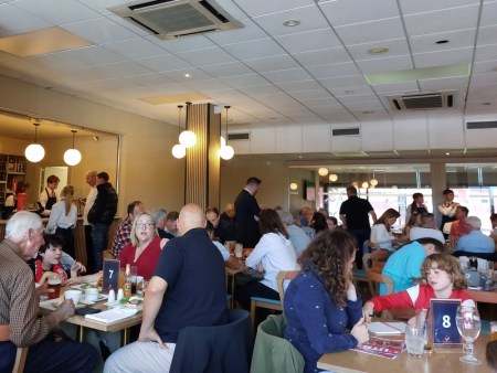 At half-time I initially joined a queue for refreshments in the clubhouse only to discover that it was cold drinks only. We later found the hatch for coffees next to a café style area outside. There were plenty of food choices and if there was nothing that we fancied in the café, we had the option of a separate outdoor burger stall or an ice-cream van.