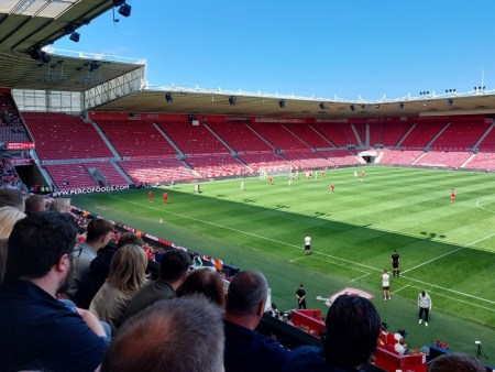 It was a tenner to get in to the Angel Telecom Stadium, which brought home how much of a bargain the similar prices are at the Boro for a Third-Round tie. I bought a programme and we started off in the covered main stand, near to a fella who was doing a radio commentary. That’s got to be a niche audience.
