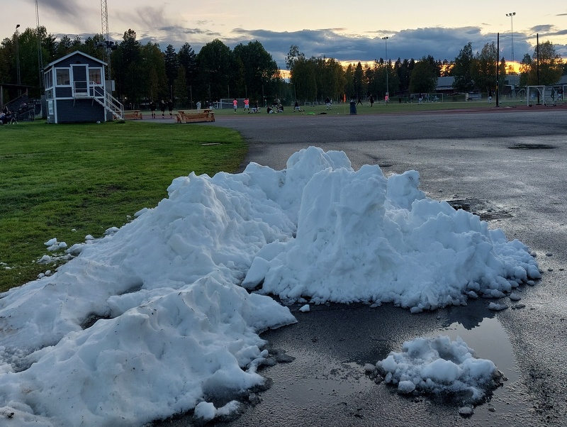 What we did see was some snow on the running track at the ground. Steve reckoned that it must have recently fallen, but I like to think that it was the remnants of a forty-foot-high pile, cleared from the pitch back in March.