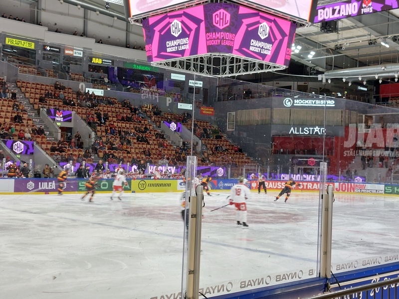 It was a close game. Lulea went two goals up but were pegged back and a late Bolzano equalizer took the game to overtime. When this happens, the teams drop from six players to four and play next goal the winner. The extra space on the ice meant that it was never likely to go too long and Lulea sealed the win just fourteen seconds after the restart. It’s not as good as football, but it’s a pleasant way to spend a winter’s evening.